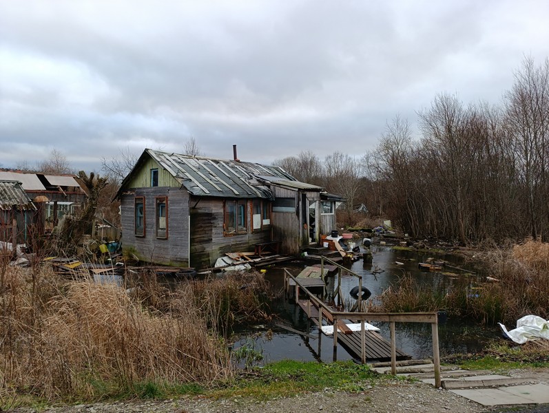 Kusjuures on huvitav see, et siin esimeses otsas elatakse püsivalt sees vähemalt kolmes majas. Selles Veneetsia stiilis majas kuhu saab üle kanali, ainult mööda purret, köeti ahju meie sealoleku ajal. Ilmselt on seal metsaservas veel nii mõnigi püsielupaik, vaatama polnud kahjuks aega minna aga nii mõneski kohas hakkasid koerad haukuma. Seda kohta võiks politsei külastada, ilmselt leiaks sealt nii mõnegi nende kõrgendatud huviorbiidis oleva kodaniku 😉