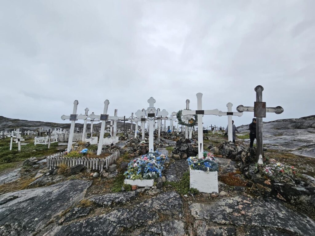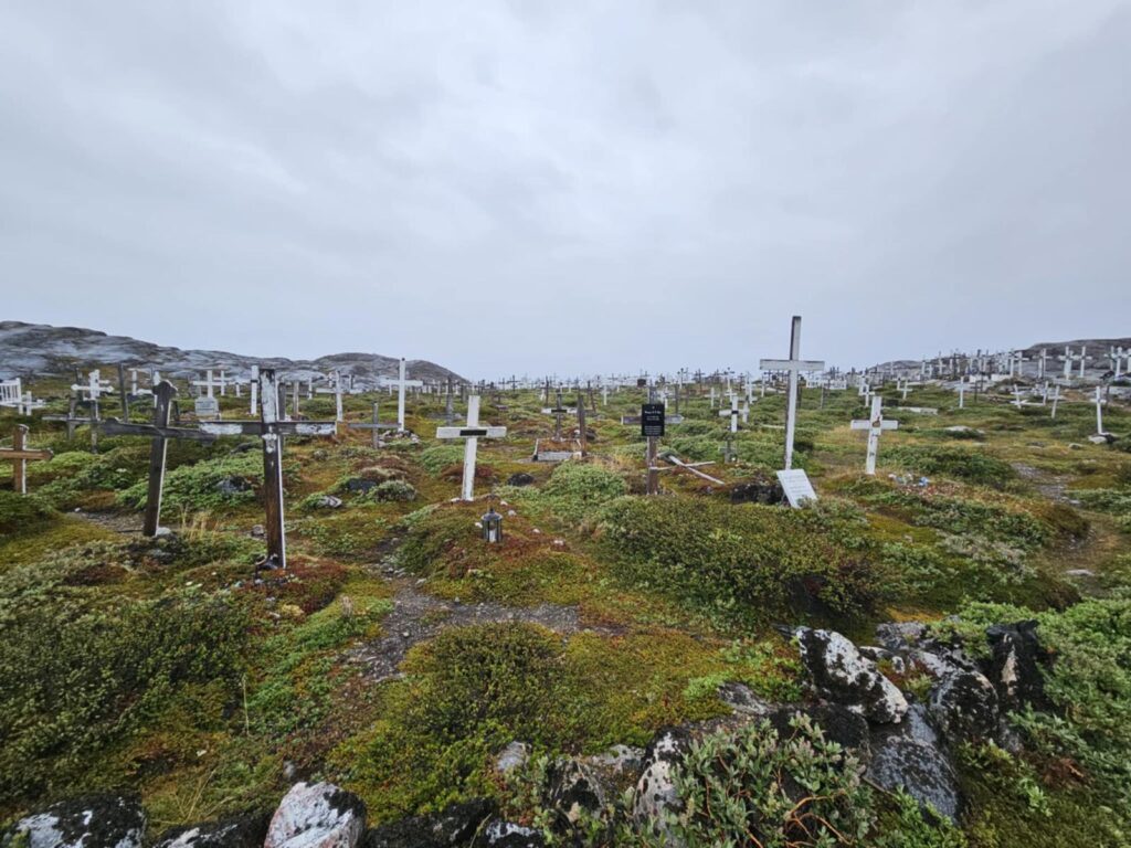 Väike ülevaade Gröönimaa kalmistutest, vähesed teavad, et siinsed kalmistud on seoses karmide ilmastikutingimustega üsnagi ainulaadsed. Need peegeldavad mitte ainult kohalikke uskumusi, vaid ka elu äärmuslikus kliimas. Kusjuures kalmistuid on siin palju, praktiliselt igas asulas on kalmistu. Need erinevad märgatavalt sellest, mida näeb mujal maailmas, tüüpiline kalmistu asub sageli lumisel mäenõlval või fjordi ääres, kust avaneb vaade merele või liustikele. Huvitav on muidugi see, et mingit kindlat kriteeriumi kalmistu osas ei ole, kohati on need aiaga piiratud kohati mitte, millest see oleneb ei tea. Eestipärasest kõrghaljastusest võib siin ainult unistada. Kõrgeim haljastus kalmistutel on pohlavarred 😉 Muidugi omapärane on siin ka see, et meile nii tavalisi hauakive või hauaplaate siin praktiliselt ei kohta. Valdav osa on valged puitristid nimetahvlitega
