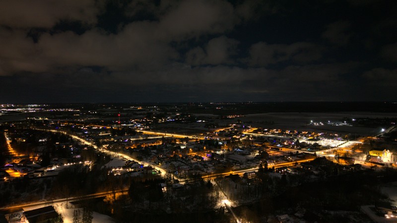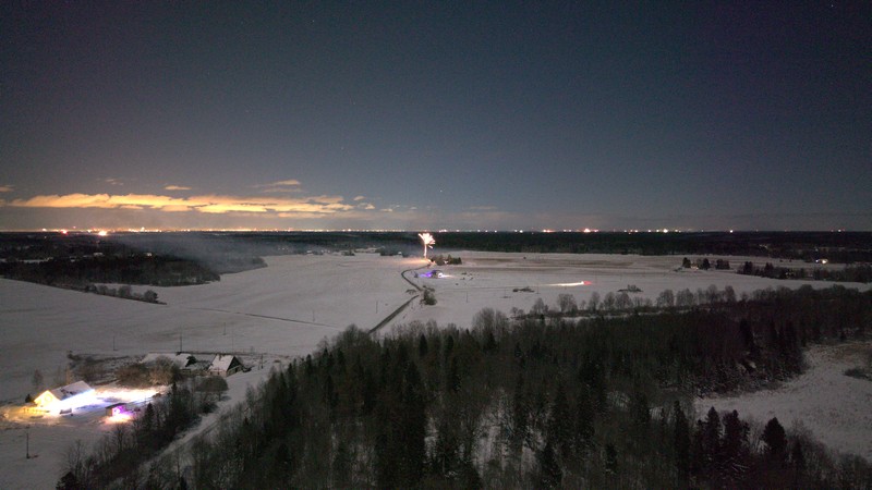 Mõnda aega tagasi vaatasin päeval pilvepiirilt oma koduküla ja rippsildu, oli selline unine ja talveune eelne meeleolu. Nüüd vaatasin koduküla pilvepiirilt tunnike enne uut aastat. Täiesti vaikne talveunes külake, ei mingit viidet, et kohe läheb raha taevasse laskmiseks 😉