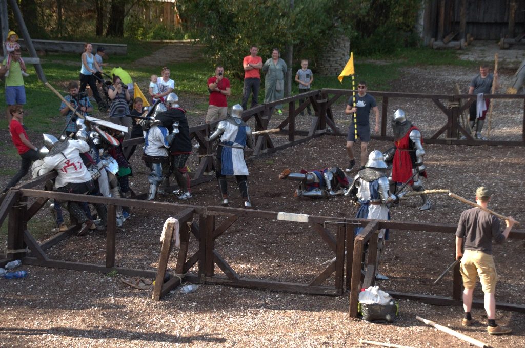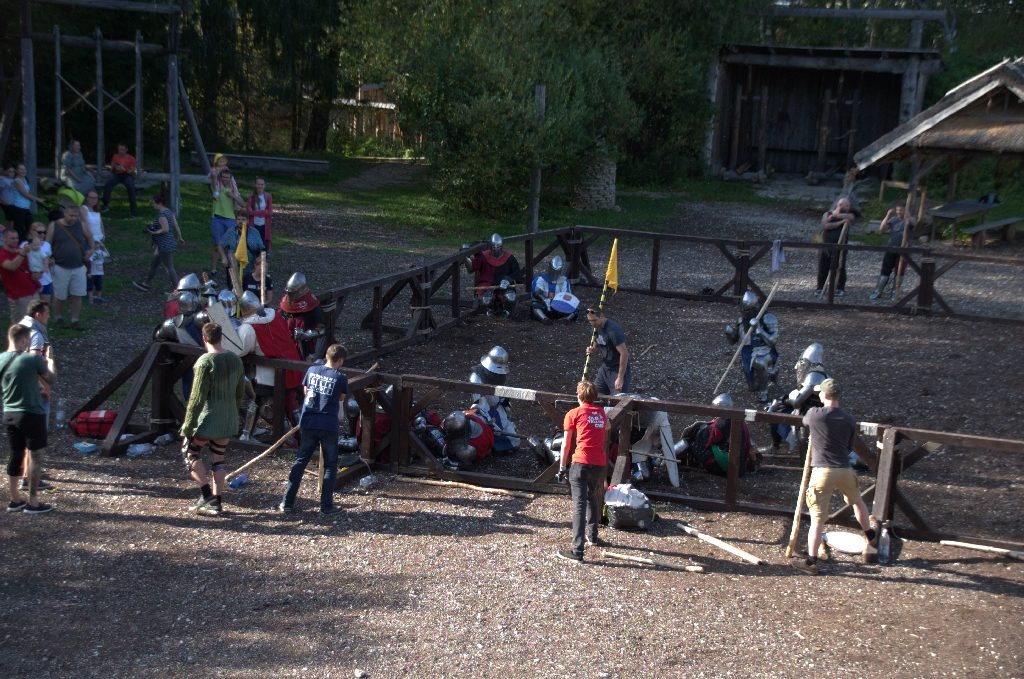 Seekord olid relvadeks mitte mõõgad vaid puukaikad 😀 😀 Ja oh seda kolinat mis sealt kostus… Kui juba mõnikümmend meest suutis koos sellist kolinat tekitada siis huvitav mis müra tekitati omalajal kui lahingus oli korraga tuhandeid võitlejaid 😀 😀 Ilmselt oli seda lahingukära kuulda ikka õige mitme kilomeetri taha 😉 Kokkuvõtvalt oli päris lahe üritus.