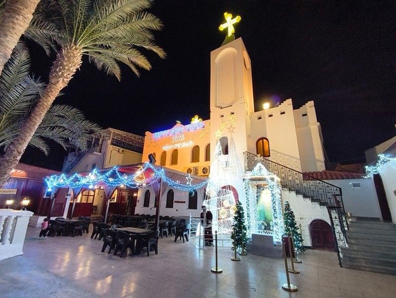 Lõpuks hotellis, viskasime kola tuppa ja kimasime linna laiama. Plaanisime Farsha kohvikus süüa aga see oli miskipärast kinni nii üleval kui all. Pole hullu siinsamas on veel Star Fish Restaurant. Tegime seal kiire söögi. Huvitaval kombel töllerdas siin hullult heas toitumuses kasse kes ikkagi käisid ümber laua ja kräunusid nagu nad poleks sada aastat süüa saanud. Kui kõht täis põikasime läbi kohalikust õigeusu kirikust Church of the Blessed Virgin Mary and St. Mina.