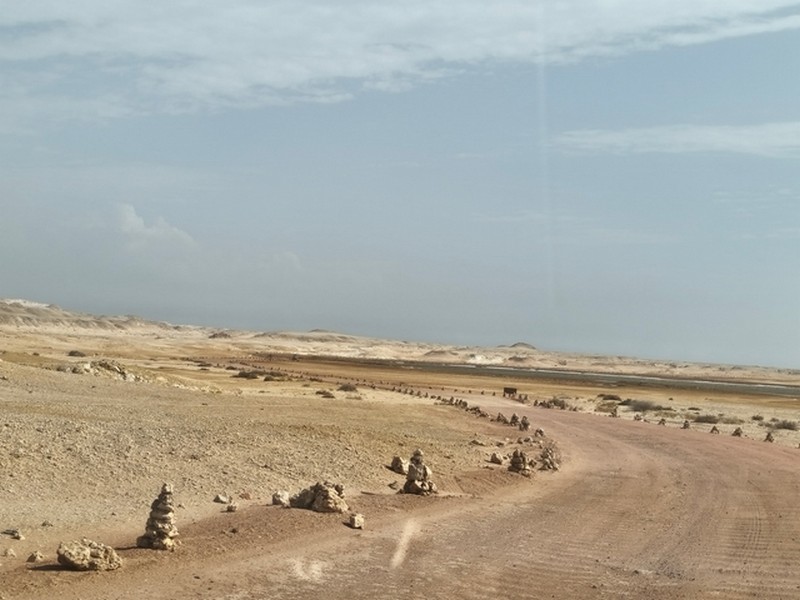 Soolajärv, selle kaldad on valged ladestunud soolast. Käisin maitsesin, võin kinnitada, et on tõesti sool 😉 Kunagi maavärina tekitatud ca 100 meetri pikkune karstilõhe, mis pea servani vett täis ja muidugi ka prügi on sinna tee leidnud. Selle lõhe sügavus pole teada aga arvatakse, et ikka kümneid ja kümneid meetreid. Veel on siin mangroovisalu. Need on ühed imelikud puud, kasvavad soolvees millest ise destilleerivad magevee. Veest eraldatud sool ladestub lehtede alumisele küljele. Tükk aega otsisime mõnda soolaga kaetud lehte, kurja, andis ikka otsida, turistid on kõik ära lakkunud 😀 😀 Nii, et kui lähete sinna trippima siis võtke tomatid – kurgid kaasa, kraabite mangroovilehtedelt soola peale ja saate mõnusa salati 😉