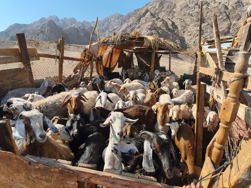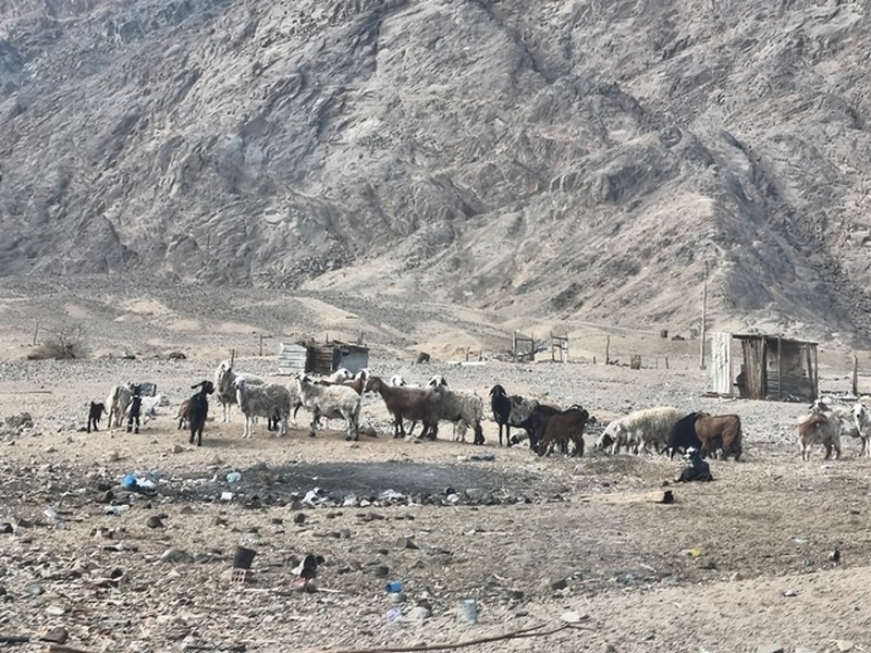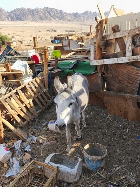 Lõpuks jõudsimegi beduiinikülla, elamised on siin kokku klopsitud käepärastest vahenditest, kõvematel tegijatel on juba kivist laotud müüridega elamised. Külastasime ühte mäestiku jalamil elavat perekonda. Kurja küll, päris arvestatav meie mõistes talupidamine, kanad, haned, lambad, kitsed, eesel ja kaamelid. Vaatasin, et lisaks kaamelitele on siin ka eeslil “käsipidur” peal, et kui aegikust pääseb ei saaks kaugele lesta tõmmata 😉 Mõtlesin, et mida hekki, kodulinde hea pidada sellistes oludes aga kitsed ja lambad… siin heina ju ei ole. Tuleb välja, et perepea käib Sharmi hotellides parandustöid tegemas ja saab sealt loomadele tasuta kõikvõimalikke toidujääke. Proovi sa meil kuskilt niimoodi loomadele toitu saada, unusta ära. Seadused nii haiged, et pigem prügimäele kui loomatoiduks. Pere kahe kaameliga pidi vanem perepoeg käima vuhvel beduiinikülas turiste sõidutamas 😀 😀