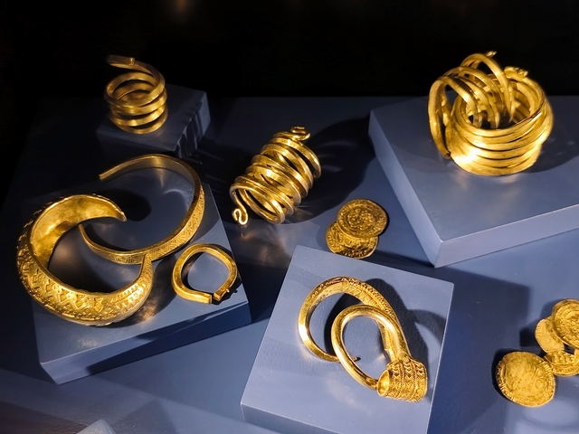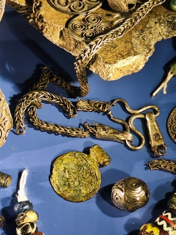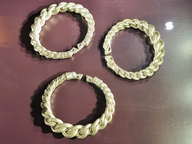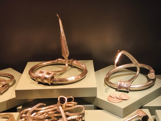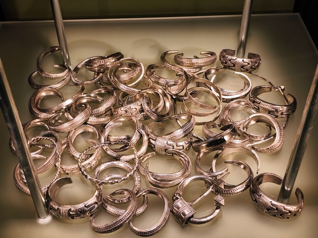 Kui üleval saalis näitusele tiir peale tehtud piilusin keldrikorrusel olevasse kullakambrisse. Turvatud on see päris korralikult ja ilmselt peabki, sest siin on ikka kümneid ja kümneid kilosid kulda nii ehete kui ka toormaterjali näol. Lisaks kullale on siin ka veel arvestatav kogus hõbedat. Muidugi pildistada siin veidi kehv, topelt turvaklaasid ja valgustus tekitavad hullult peegeldusi aga ühtteist sai siiski pildile ka nikerdatud 😉